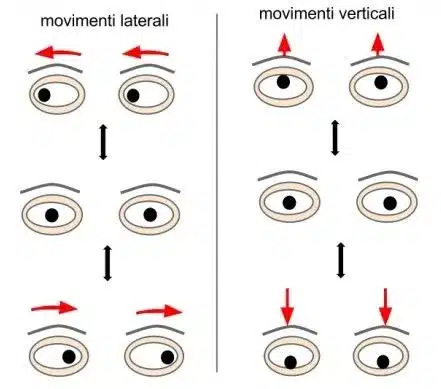 L’occhio a riposo si trova in posizione primaria di sguardo, invece se viene effettuato un movimento lungo un asse l’occhio sarà in posizione secondaria, se invece si ha rotazione su tutti e tre gli assi sarà in posizione terziaria.