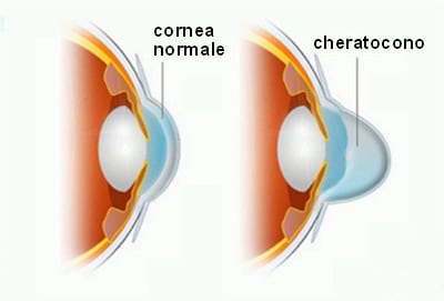 Il cheratocono è una patologia non infiammatoria della cornea che può insorgere tra i 14 e i 20 anni e con grande frequenza è di carattere ereditario. Si tratta di una progressiva deformazione della cornea, che diventa più sottile e sporgente rispetto alla norma.