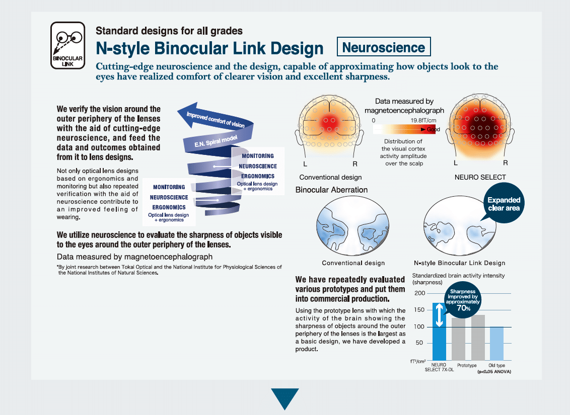 Un salto rivoluzionario nel mondo delle lenti progressive. Le Neuro Select di Tokai nascono dall’incontro tra ottica di altissimo livello e neuroscienza applicata: un approccio unico che studia come il cervello elabora le immagini, per creare lenti che si adattano in modo naturale e immediato alla visione.